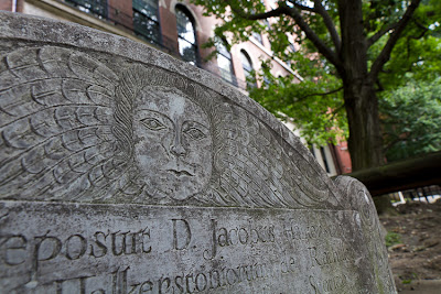 | A gravestone at the Granary Burial Ground, where victims of the Bosston Massacre are buried. |