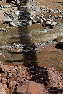 After the boys got a quick camel ride (dromedary, actually), we walked down the road which paralleled the river, footbridges a dozen or two feet above the water leading to small ‘restaurants’. Plastic patio chairs/tables set up all along the river provide an outlet for the residents of Marrakesh during the hot summer months. Hibachi-style grills and tajine stands line both the roadway and river, though it was early to eat, few patrons around. We checked out a small Berber artisan’s ‘shop’ (merely a room in his home dedicated to selling stuff), and a few people enjoyed the traditional mint tea that is served here in Morocco.