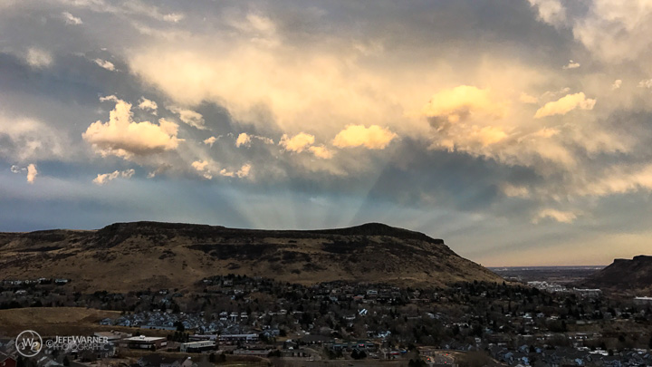 Crepuscular shadows danced over N. Table Mtn. (see time-lapse in other post).