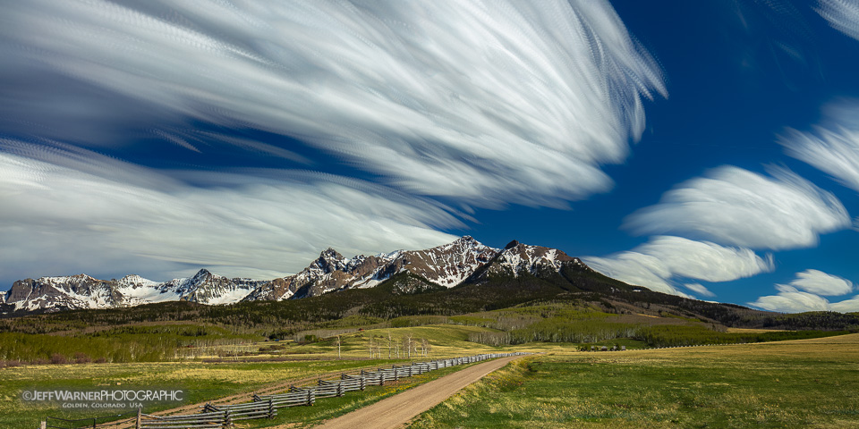 After spending so much time in the desert this spring, it was finally time to head upward, and the San Juans are always my mountain range of choice. A quick stop in Ridgway with dynamic clouds led me to shoot a TerraLapse sequence from the Last Dollar Ranch, overlooking the Sneffels Range and Dallas Divide. One beautiful spot in this state–in this country; I’d love to live there someday.